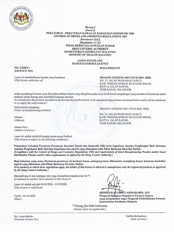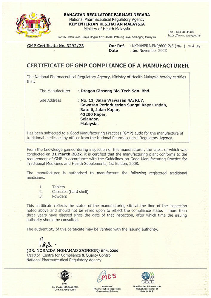 蔘龙国际集团于2008年在吉隆坡巴生建立符合国际GMP标准的蔘龙生物科技制药厂,同时结合数十位海内外中医师及科学家团队,研发出低温28°C真空萃取浓缩喷雾颗粒,奈米高科技高速破壁击成1000细目。技术的突破,让人蔘品质效果更好,人体更加容易吸收。